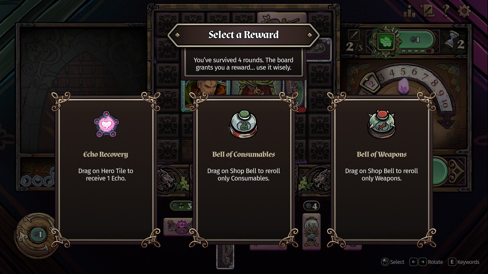 Draft and place new weapon, item, and trinket tiles to unlock combos and upgrade your Hero through a branching set of abilities.