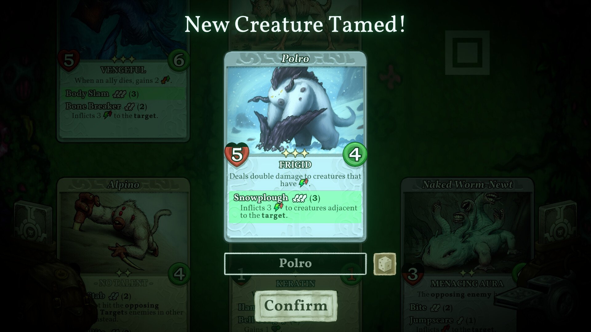 In this game, cards are not simply handed out to you, you have to tame your enemies to add them to your deck!
